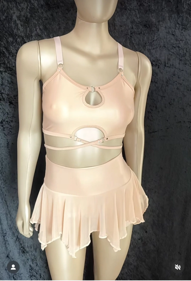 Prepare-se para arrasar com o conjunto que é puro luxo: um short saia com bicos charmosos e um top transpassado que valoriza seu shape e ainda dá aquele toque de mistério. Perfeito para quem quer brilhar sem esforço, seja para um passeio ou aquela festa que pede um look estiloso e confortável.